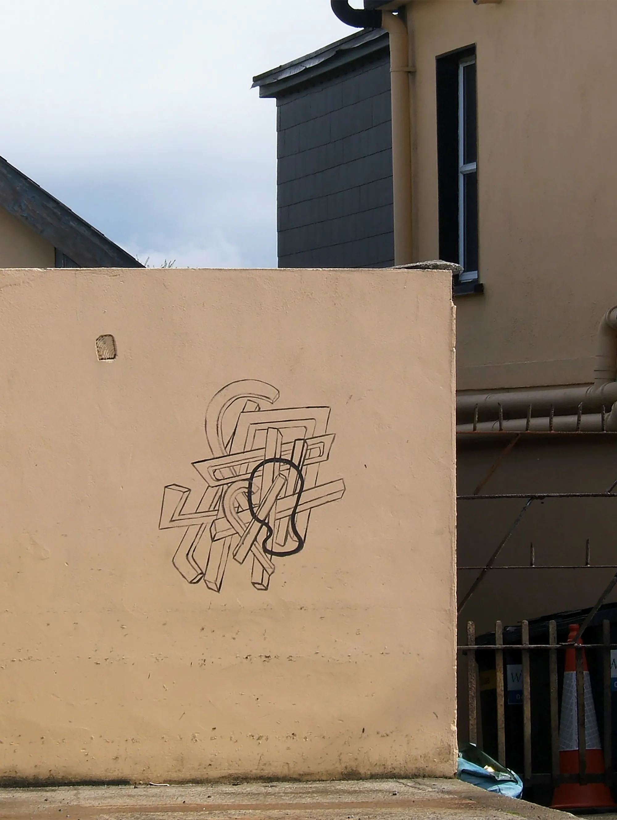 On a building scheduled for redevelopment at the west end of the town, the artist unleashed a series of drawings incorporating elements of the body with elements of local architecture. His impulsive inky drawings evoked perceptions of graffiti and brought a new energy into a quiet corner of the town.