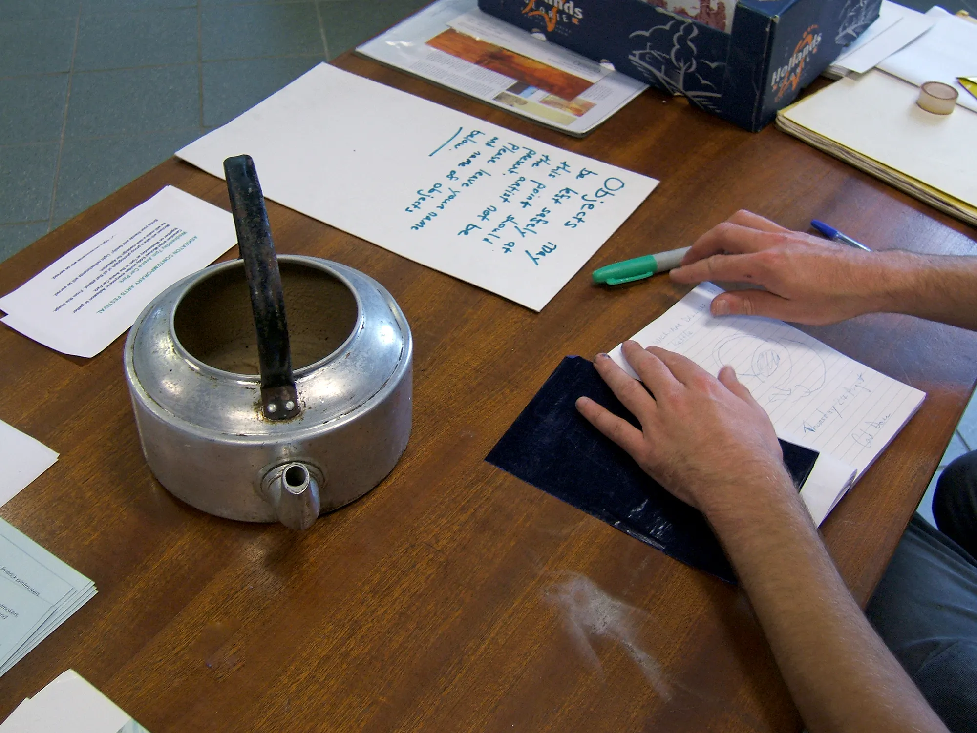 Working from a makeshift desk in the foyer of the local Bank of Ireland, the artist offered a ‘sketch and draw’ service to the public. Following conversations on the street and some initial advertising, many local people brought in broken objects from around their houses, which were then lent to the artist for a week, in the manner of a short term deposit. At the end of the project, donors received their objects back along with a complimentary drawing of the object, which acted as a kind of accumulated interest for their involvement.