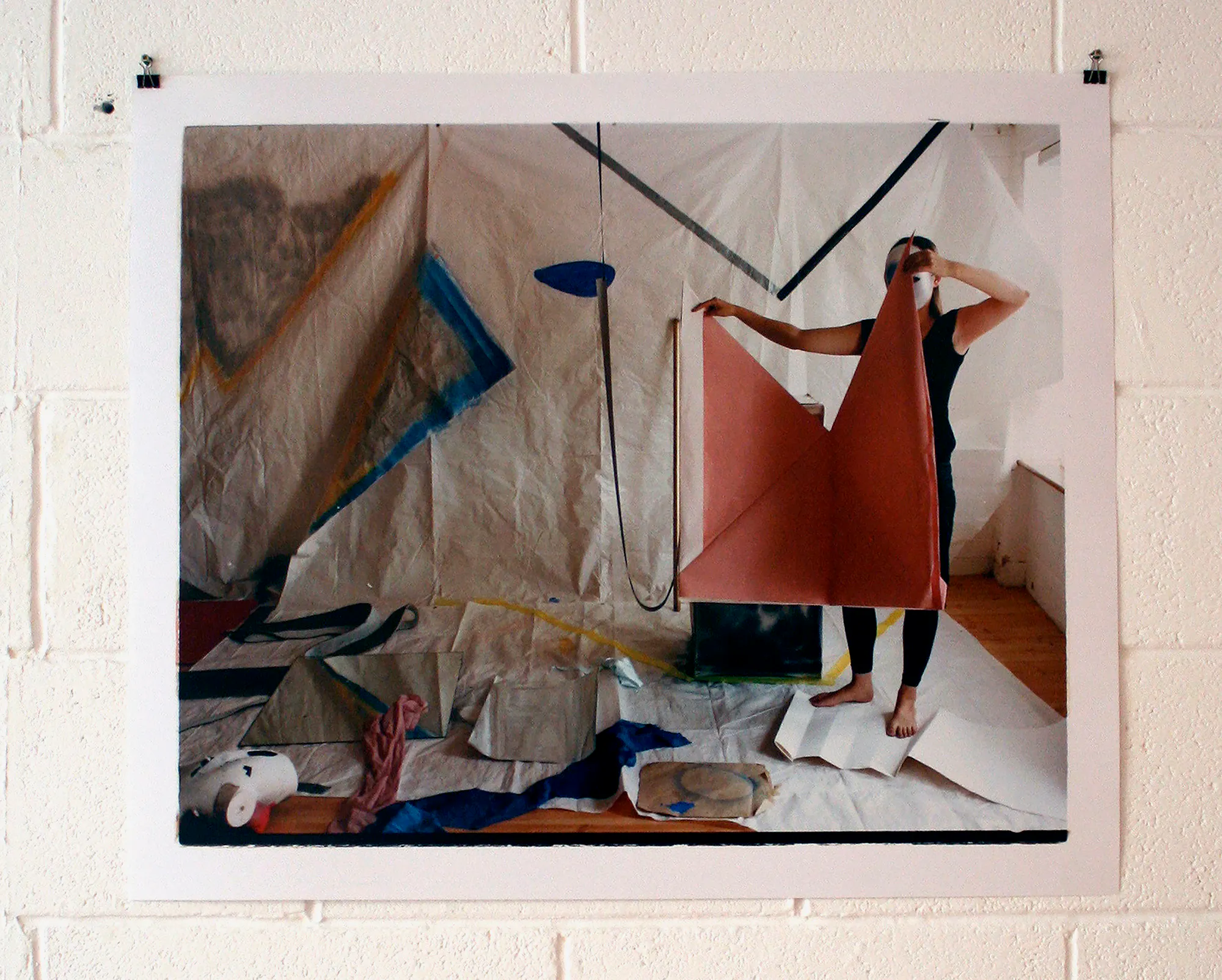 The artist used a variety of materials to create an installation. She then photographed herself in-situ within the installation and showed these photographs as part of a final installation.