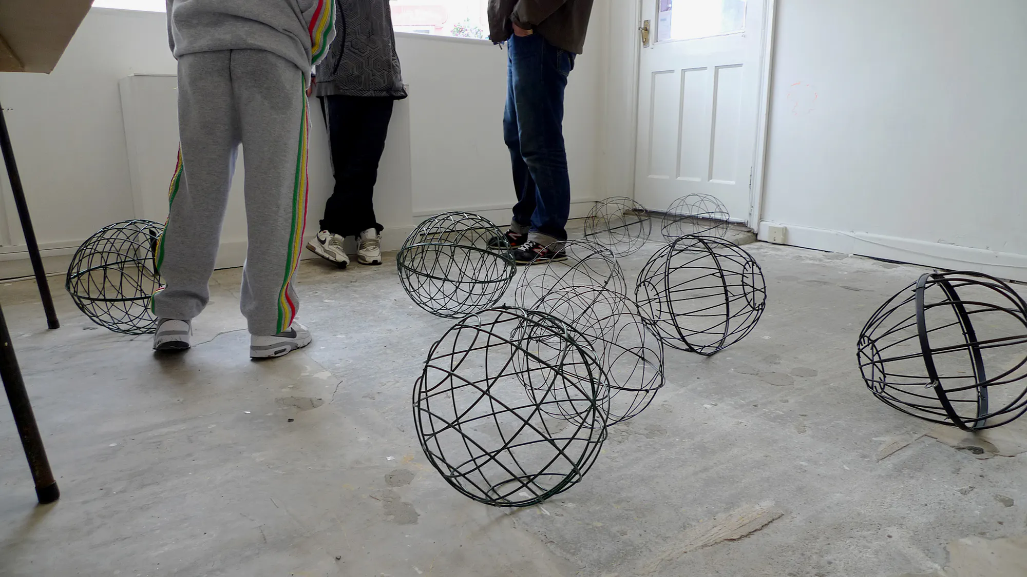 Hagerman’s work frequently focuses on the relationship between plant life and the built environment. He photographed a variety of sites around Limerick where ivy has grown over buildings. Along with producing a video work and a series of sculptures out hanging baskets for flowers, he made a series of in-situ drawings on windows and walls around Askeaton that resembled the growth of lichen on surfaces of the area.
