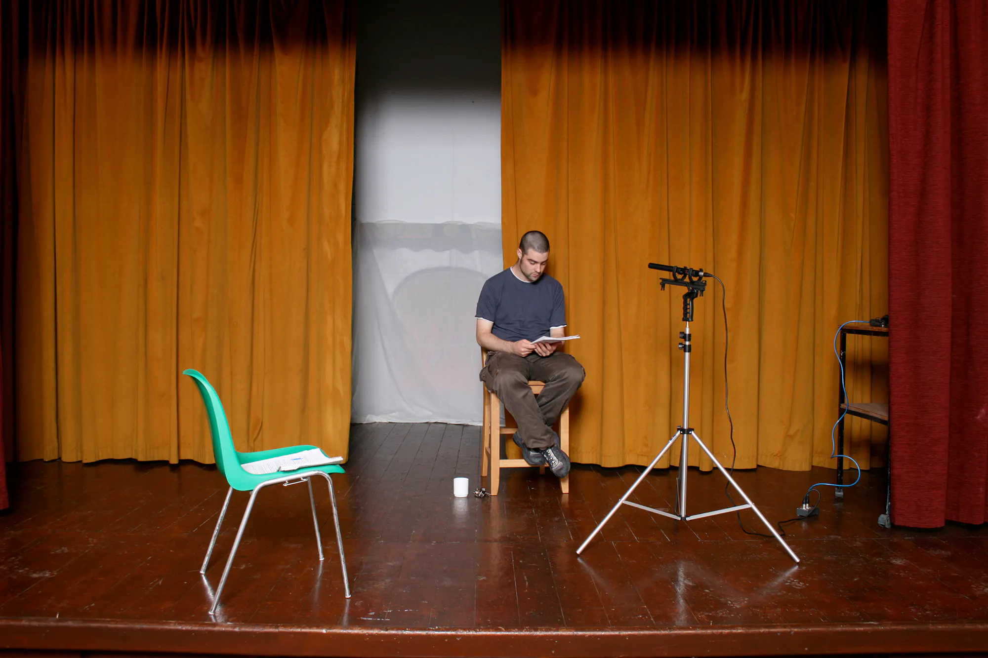 Anita Di Bianco recorded vocal performances of a dramatic text by the French Surrealist photographer and writer Claude Cahun dating from 1925, which revisits mythological and biblical tales edged with modernist wit, and considers stories of resistance and revenge. Playing the irreverent roles of Judith, Salome, Sappho, and Sophie were Susan Holland, Patrick Keaveney, Joanna Hopkins and Annette Moloney. The audio work was both recorded and presented on the stage of Askeaton’s Community Hall, with viewers asked to stand between drawn stage curtains to listen to the 20 minute compilation of voices.