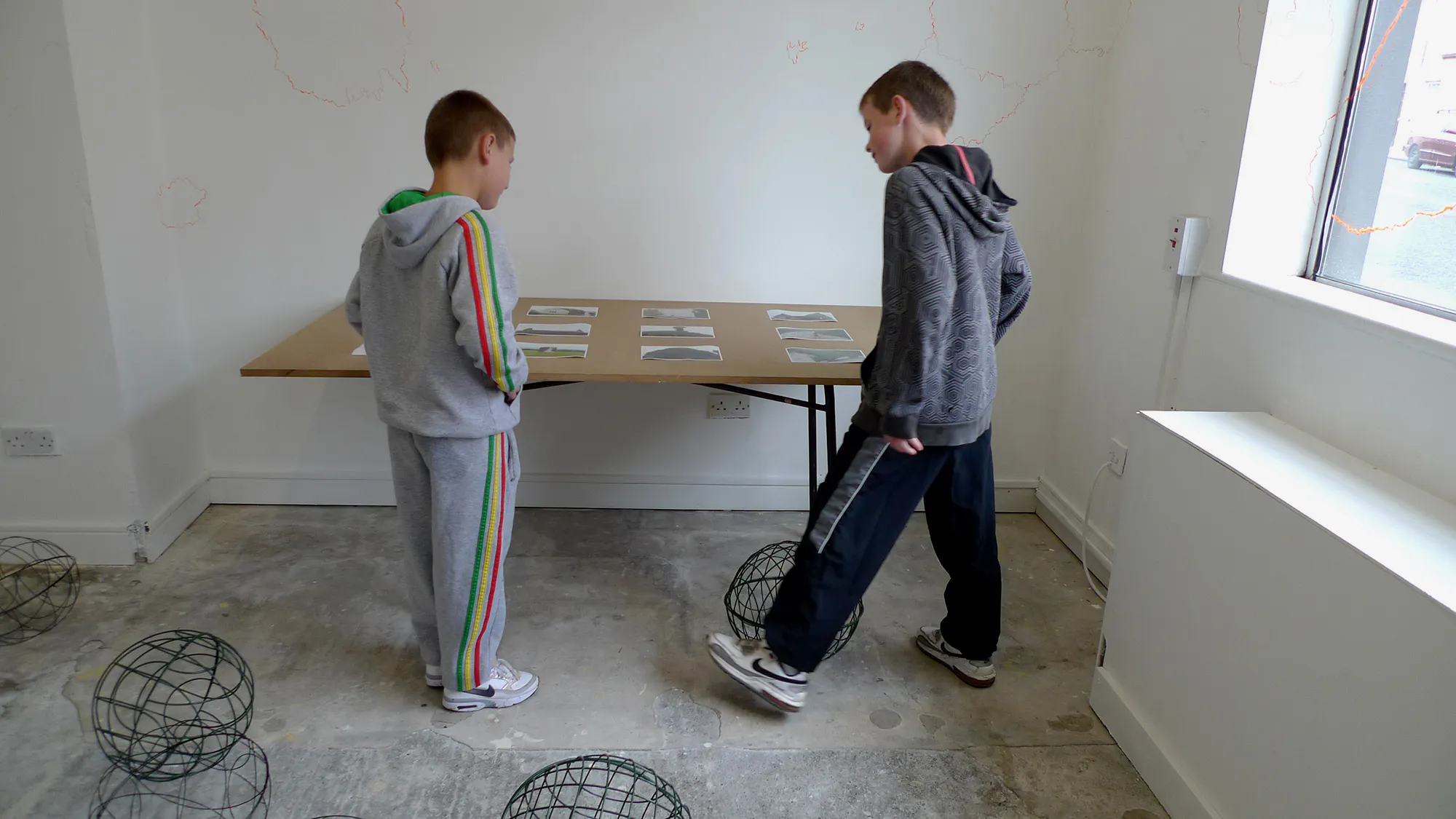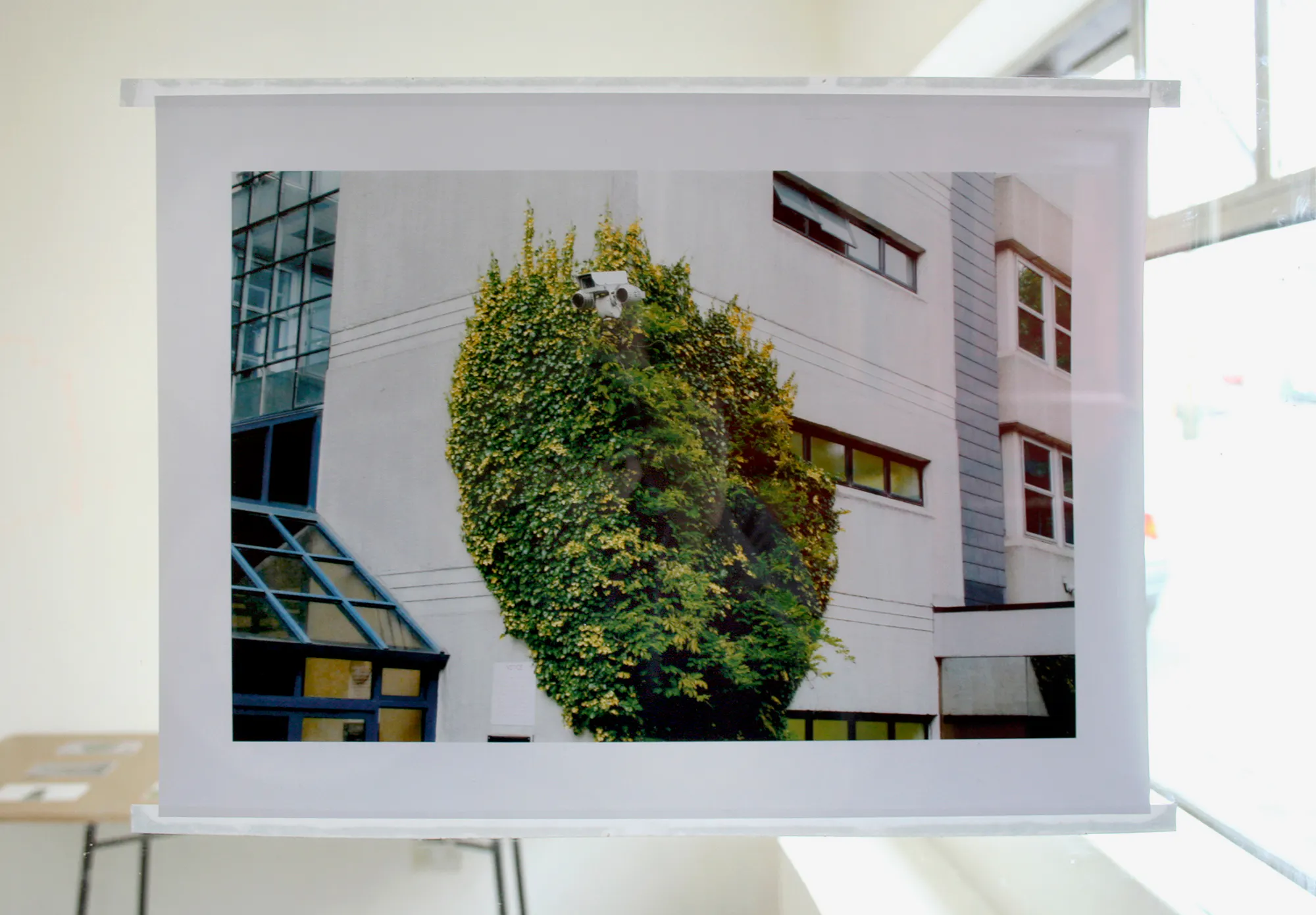 Hagerman’s work frequently focuses on the relationship between plant life and the built environment. He photographed a variety of sites around Limerick where ivy has grown over buildings. Along with producing a video work and a series of sculptures out hanging baskets for flowers, he made a series of in-situ drawings on windows and walls around Askeaton that resembled the growth of lichen on surfaces of the area.