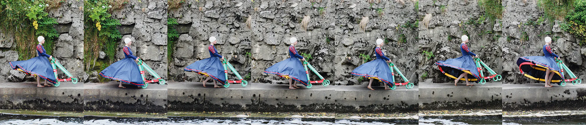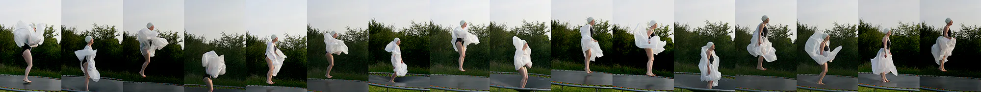 Michelle Browne’s Walk, Jump, Leap, Soar consisted of video and photographs documenting performances enacted in locations such as local swimming spot The Leap, a trampoline in Pat Fitzgerald’s garden and Askeaton Swimming Club’s diving board into the Deel. Utilising photographic approaches pioneered by Eadweard Muybridge, Browne’s work allegorically focused on the uncertainties of motherhood, finding a public role for such concerns to be discussed and played out.