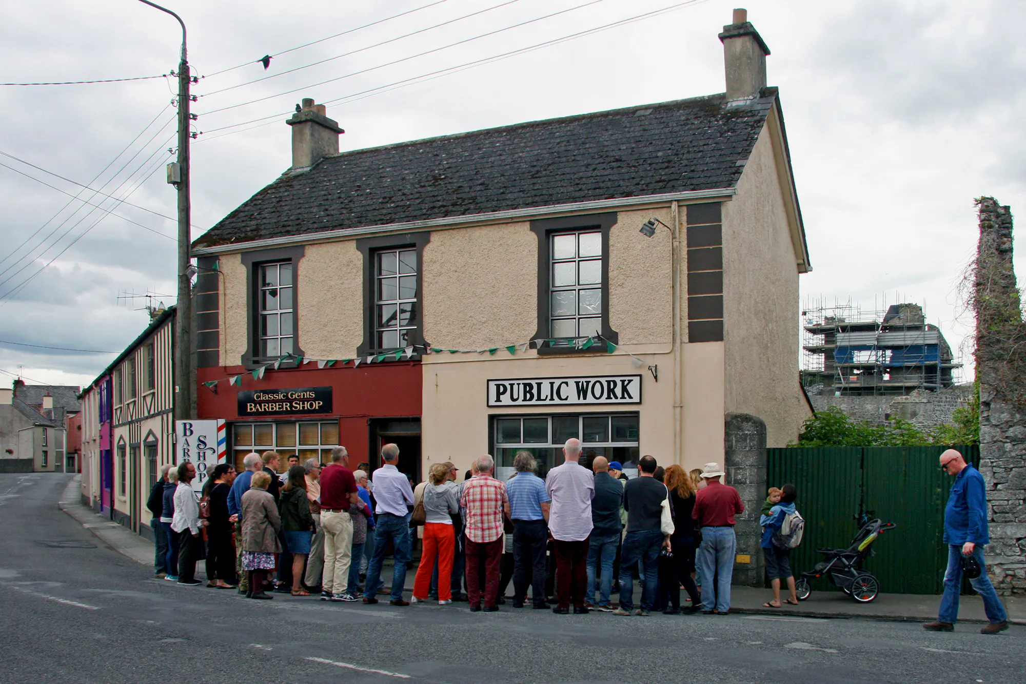 In Deirdre O’Mahony’s Public Works, the artist establishes an office in an empty shop in the town’s East Square. During opening hours, visitors can consult the artist and a compilation of documents tracing the hopes and residues of mainly unimplemented infrastructural and industrial development policies of the area. Ecovillage settlements, road development, rail networks and factories funded by speculative foreign investment all feature, accompanied by a videowork tracing the history of Shannon Development, a now defunct regional quango that continues to haunt the managerial and bureaucratic regimes of the MidWest.