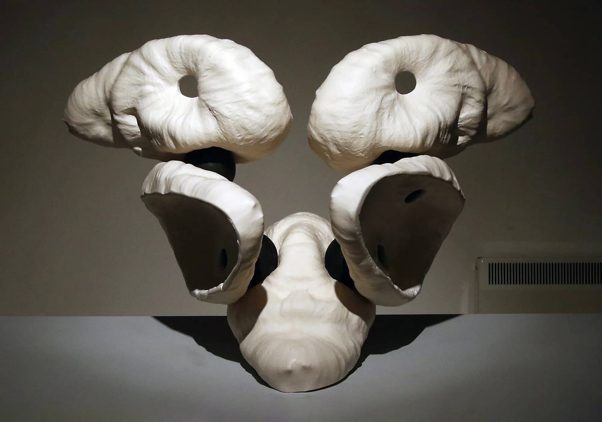 Italian artist Michael Fliri has been experimenting with novel casting processes and complex sculptural techniques at an empty retail space in Askeaton’s East Square. For some time Fliri has explored the role of masks in tribal and folk rituals, objects that are now often seen in ethnographical collections in museums throughout the world. In Askeaton, a collection of new mask sculptures each share an eyeball with another mask, intrinsically interconnected and surreally acting as an allegory for the tense biopolitical power structures that inhabit our contemporary times.