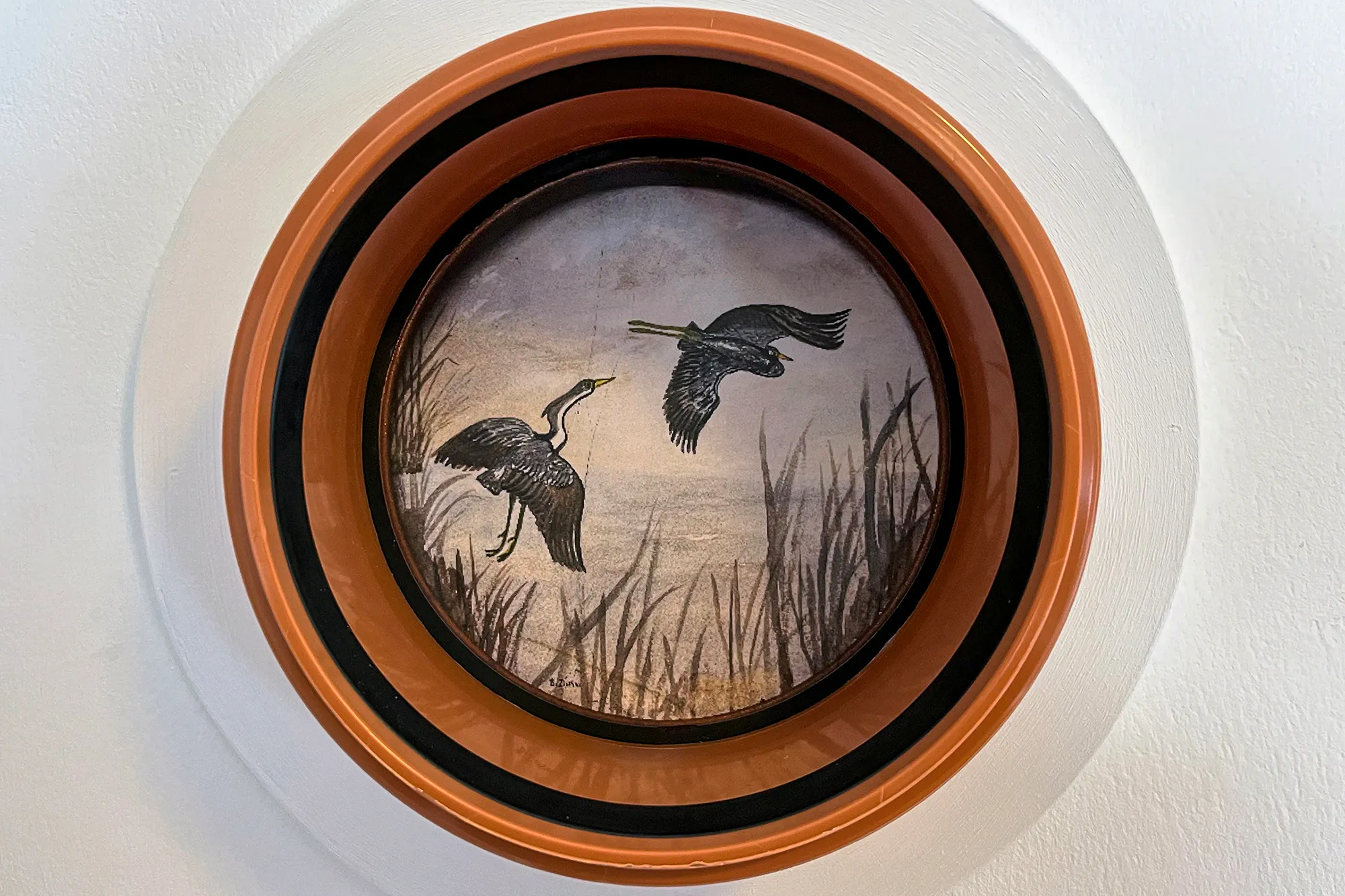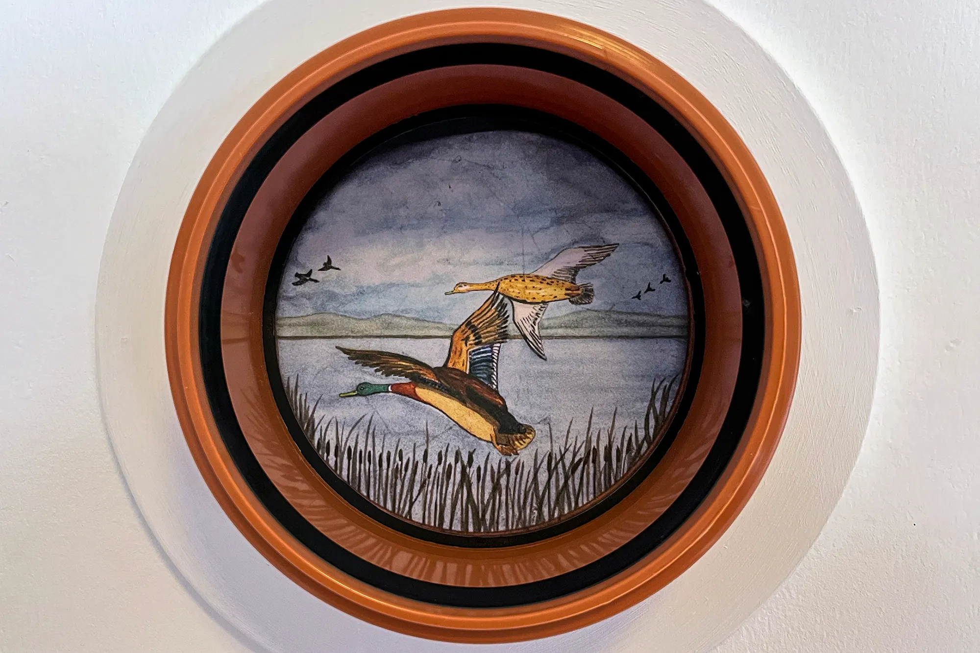 The river has in recent years suffered from substantial pollution, urban waste water runoff and resulting cancellation of the annual Deel Swim celebration. Askeaton Ballysteen Natural Heritage’s new community-generated video and reconstructions of folk artist Bobby Duhig’s (1930–2014) sewerage pipe paintings, seen here below, and are both poignant reminders of issues that compromise the ecological beauty and the need for sustainable conservation. The exhibition was designed by Dan Scully and Ruza Leko of Studio Suss with digital accessibility available here.