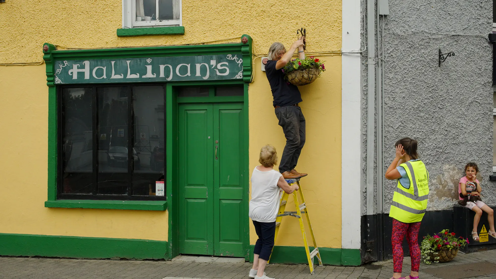 When I first came to Askeaton for a site visit earlier in 2023 I met the TidyTowns group at their pub quiz fundraiser in Cagney’s Bar. Una from the committee, who features heavily in the video, said cheerfully and unironically ‘welcome to the neighbourhood’ which stuck with me. What also stuck with me was Askeaton Contemporary Arts curator Michele Horrigan’s joke that a stranger could come to town at a certain time of year, be mistaken for a TidyTown judge and get anything they asked for!