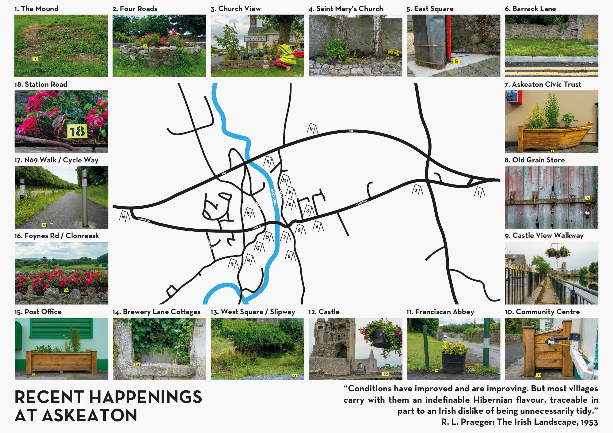 Robin Price’s video and installation Flowers and Flamethrowers and map Recent Happenings in Askeaton were made working with Askeaton TidyTowns. Here he reflects on the relationship between Ireland’s annual competition for picturesque townscapes and contemporary art: