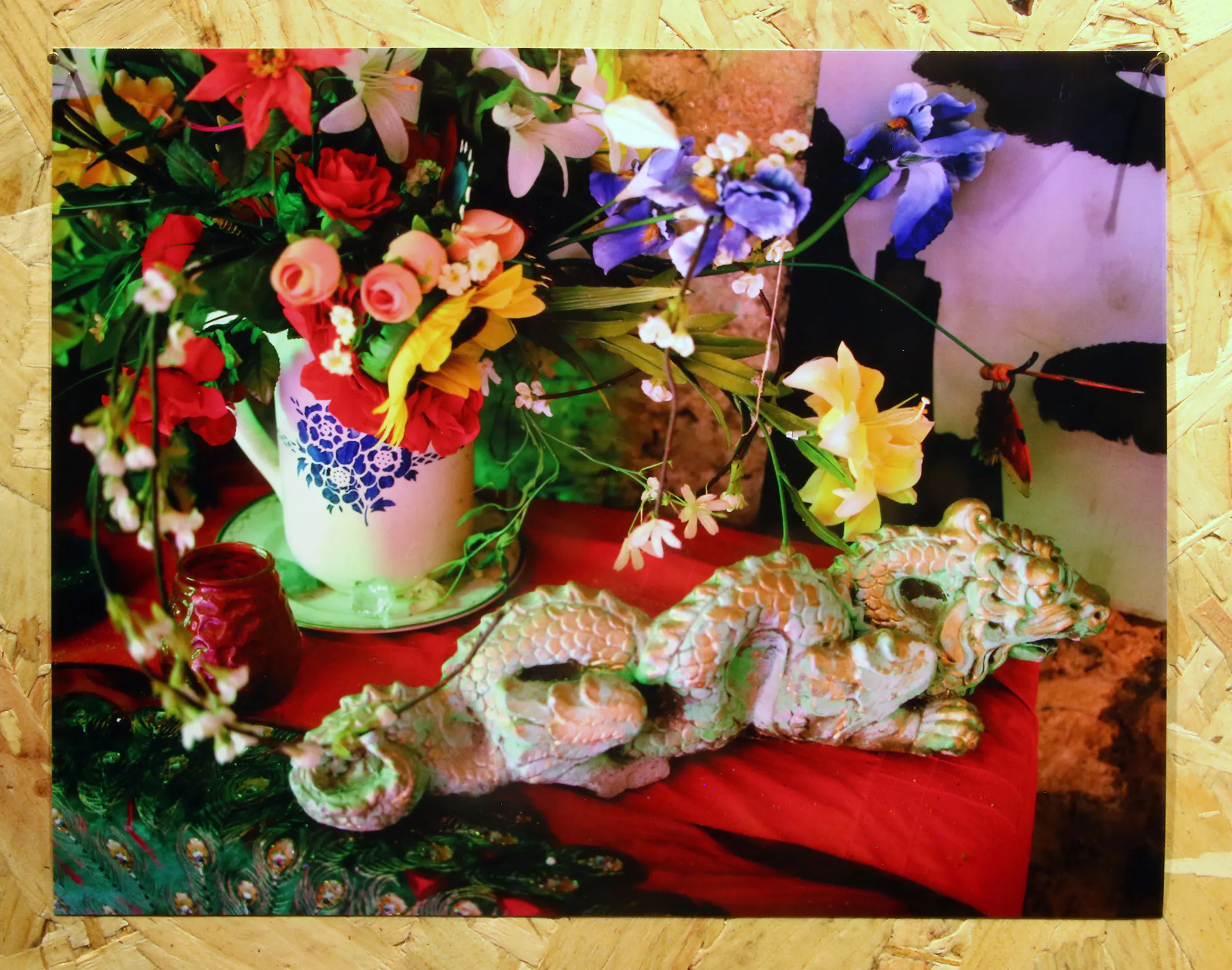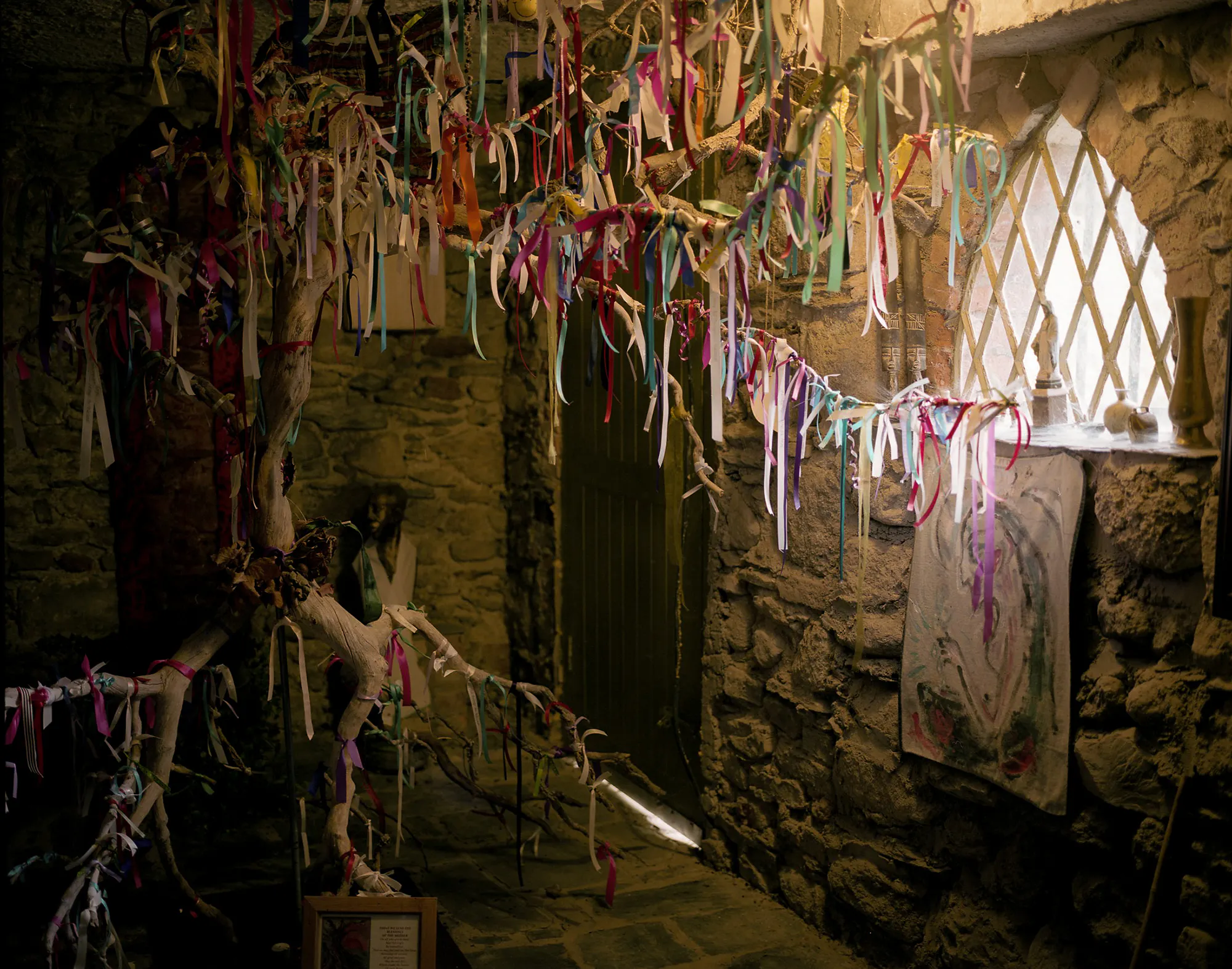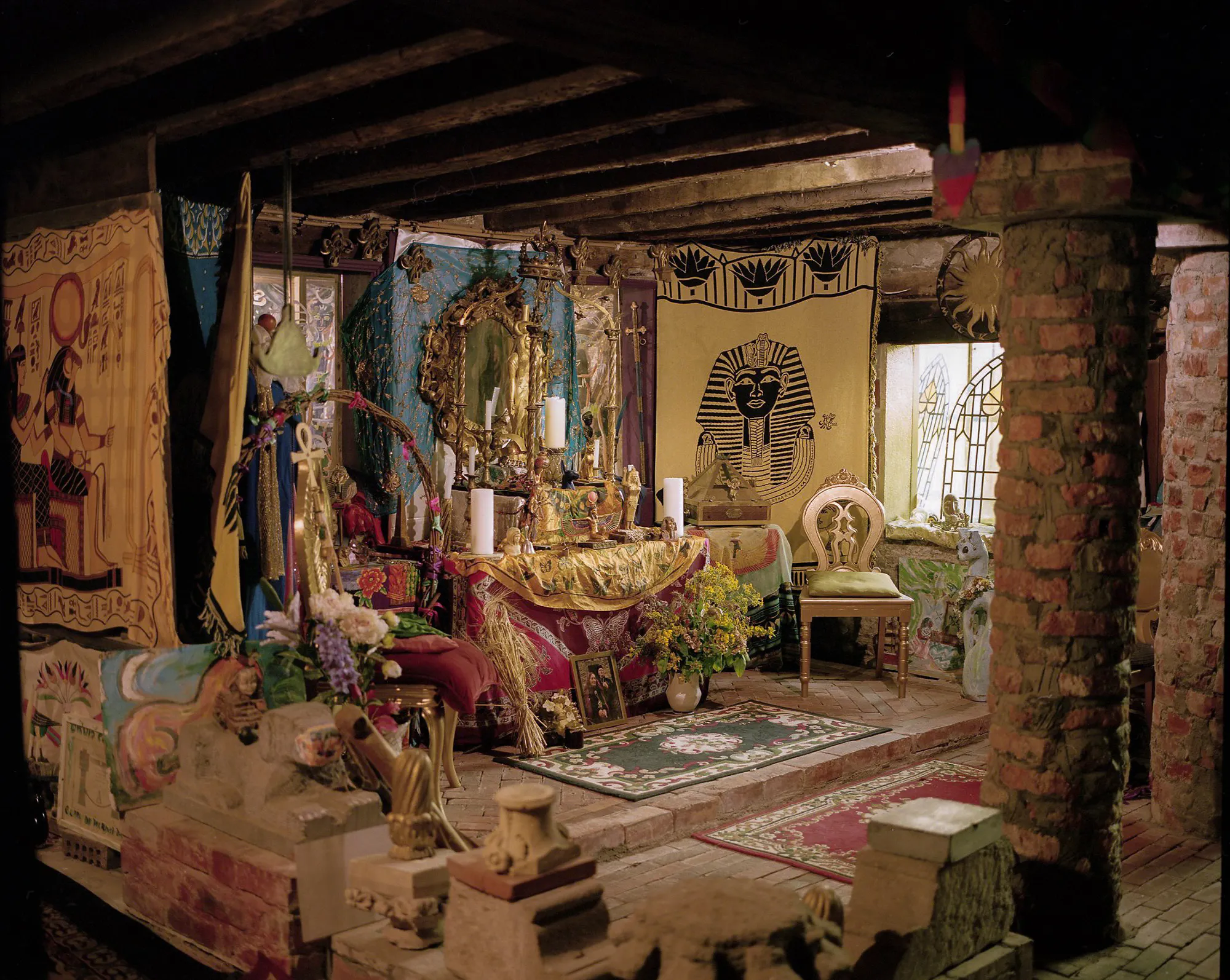 Patrick Hough’s research led him to the Fellowship of Isis, a neo-pagan religious organisation founded in 1976 in Carlow to revive worship of the ancient Egyptian goddess Isis and to promote more general knowledge of matriarchal deities. His photographs carefully unveil the temple’s kaleidoscopic worldview, and are paired with a selection of archived newspaper articles reporting the fellowship’s activities over the years. Hough’s sensibilities disavow any dogmatic presumptions of cult-like rites and sacrifice, and reveal the fellowship as symbolically diverse, eccentrically aware of nature as something to be revered and conserved.