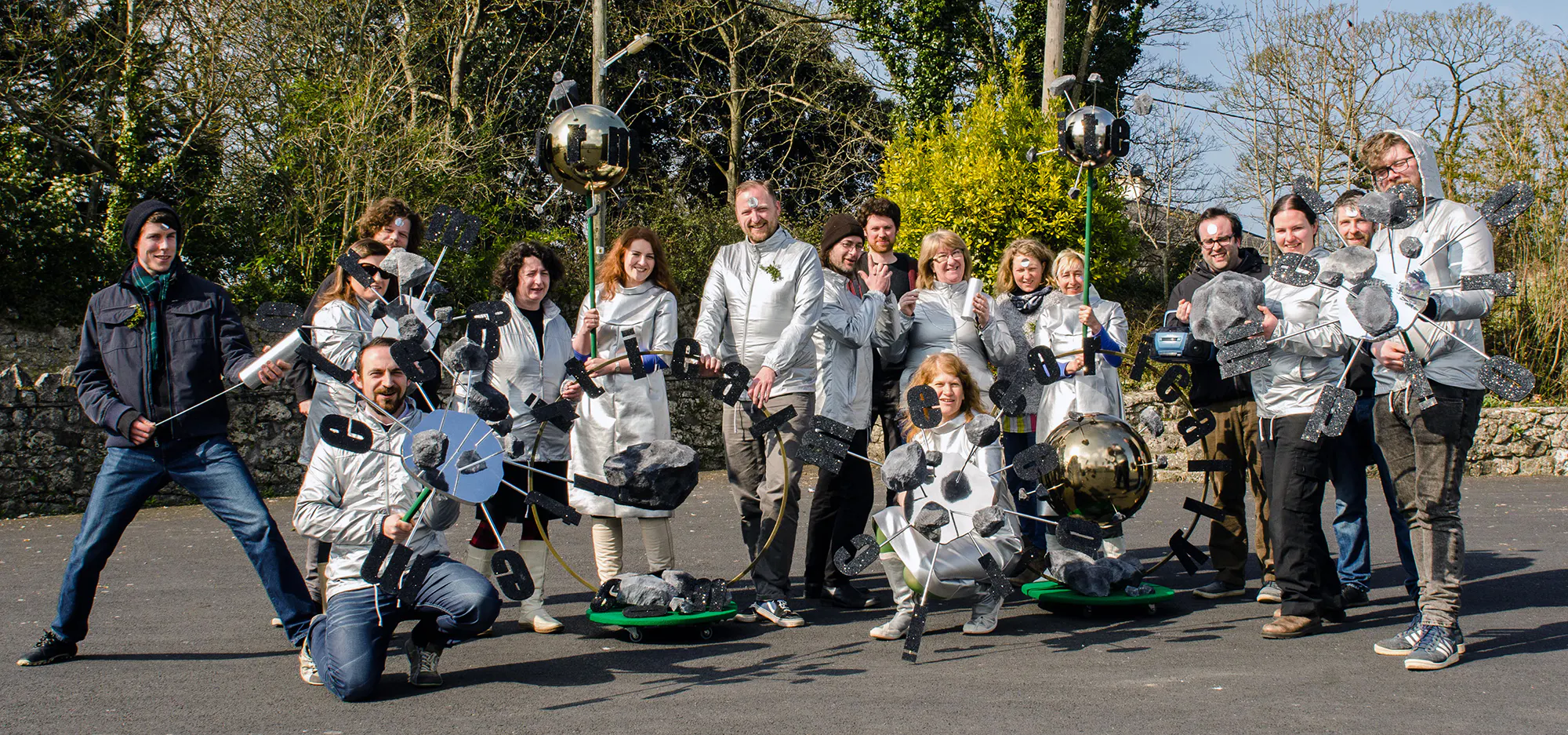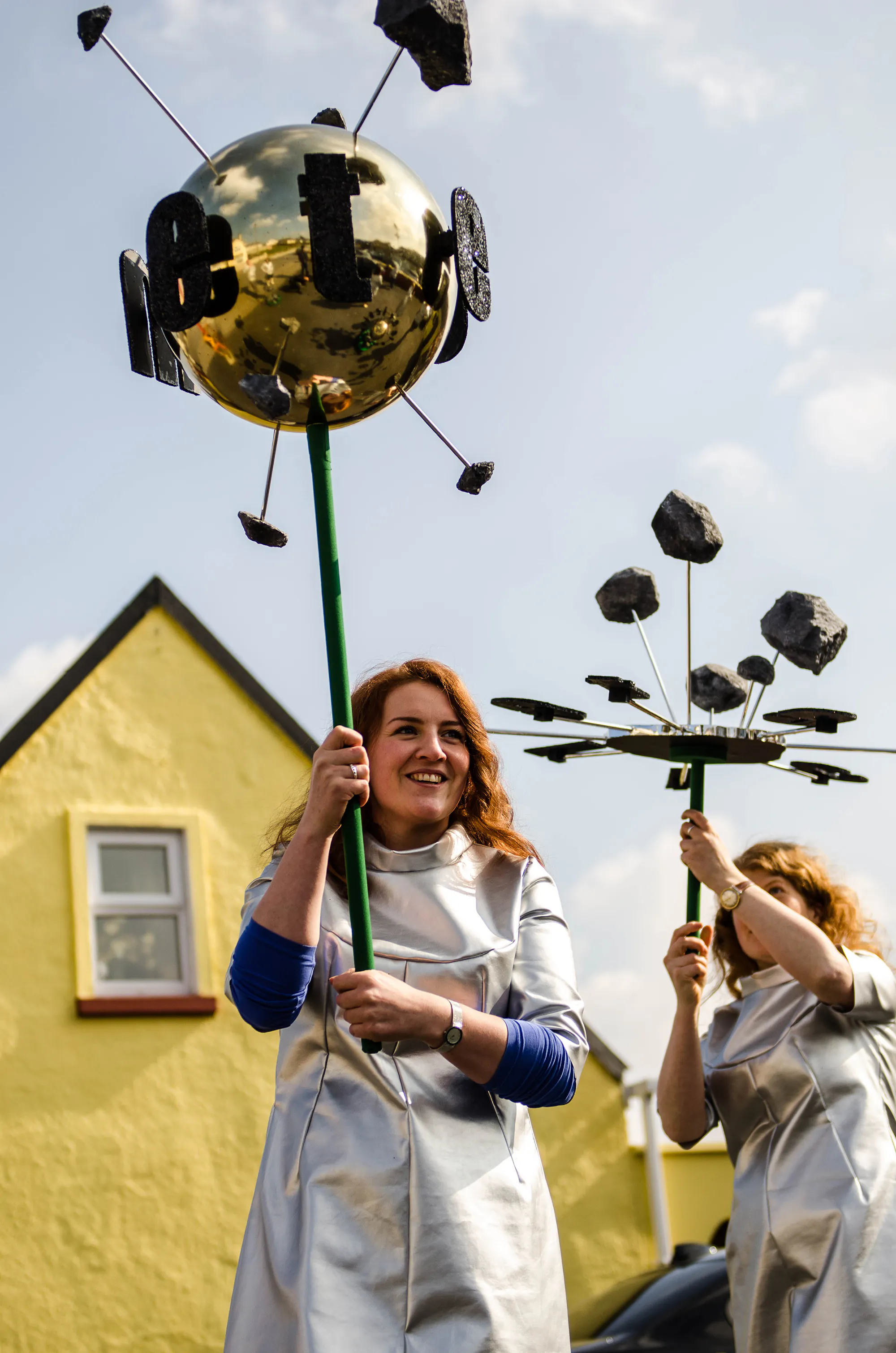 The next year, Susan MacWilliam’s entry celebrated the Limerick meteorite fall of 1813, an incident she encountered when on residence here some months before. Dressed in glitzy costumes designed and made by the artist, a large group made their way through the town equipped with a wide variety of sculptures evoking the formal grammar of the space age. Titled IC ITE OID, a wonderful pun on the various linguistic manifestations of a galactic phenomena, MacWilliam’s project also interweaved characteristics of her audio installation placed in the local Franciscan Friary the previous summer, where she incorporated elements of Aldous Huxley’s seminal 1954 novel The Doors of Perception – our press release read, ‘expect a psychedelic cosmic sensation on the streets of Askeaton’.