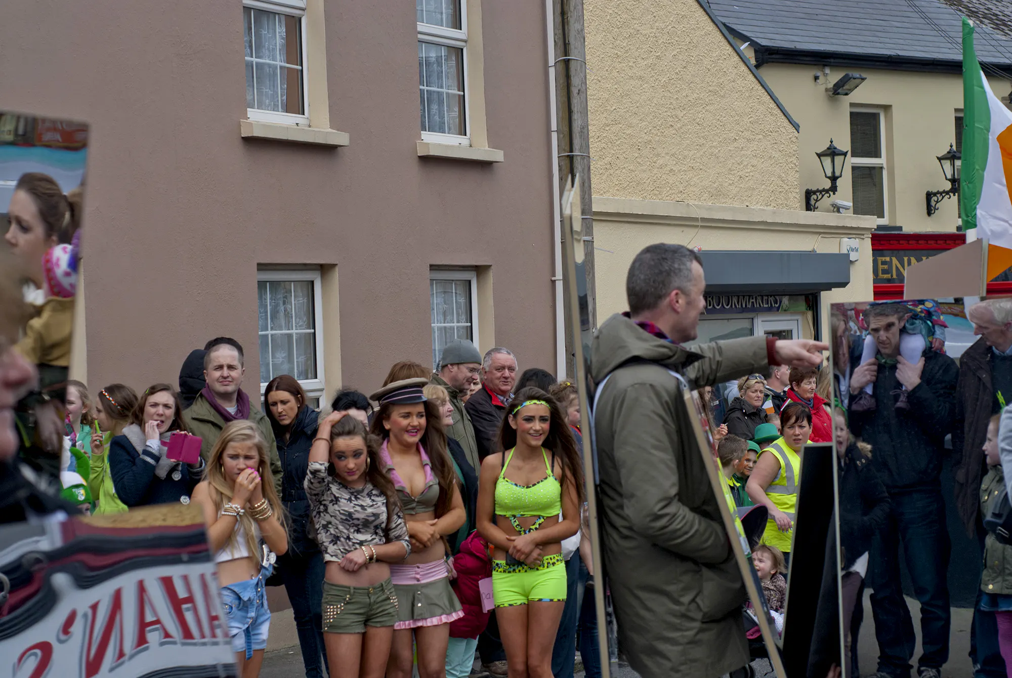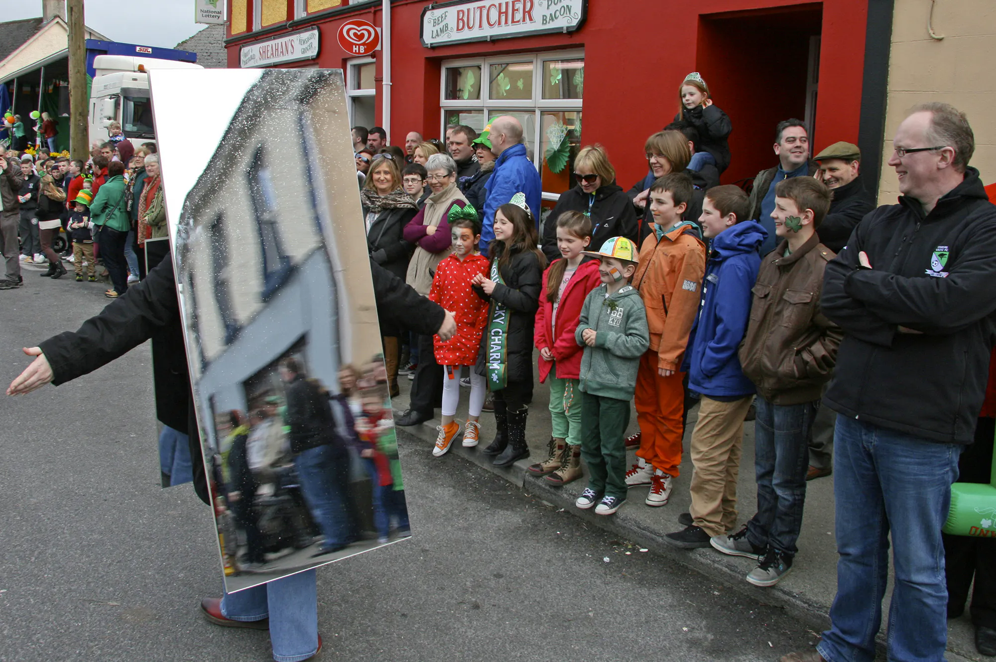 In recent years, and based on the same ground as Patrick’s whitewashing of Pagan Ireland, a ‘contemporary art intervention’ has been part of the annual March celebrations of the national saint – in reality, and outside of the implied artspeak, it is a representation of just another part of the community alongside everyone else. Clubs and societies such as the Pioneers, girl scouts, resident groups, boxing club and GAA, with activities such as the emergency services, Irish traditional music and dancing and hunting hounds all rub shoulders with the local tractor repair man, vintage cars and a loud brass band. For anyone who hasn’t been to a rural town on 17 March, its worth mentioning that virtually anyone can turn up and join in, there is no pre-registration, and is far removed from the strict admission policies seen in parades in cities.