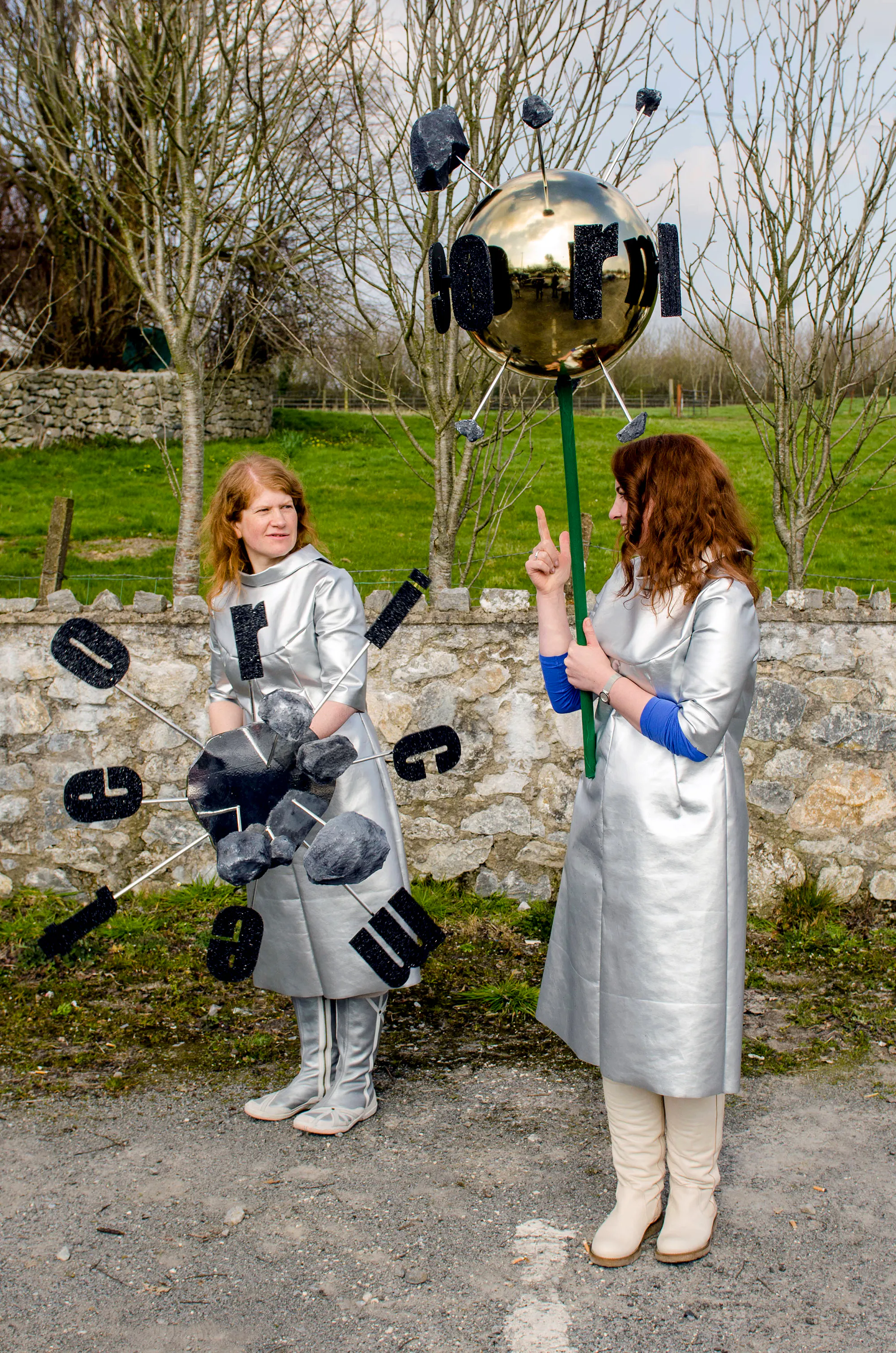 The next year, Susan MacWilliam’s entry celebrated the Limerick meteorite fall of 1813, an incident she encountered when on residence here some months before. Dressed in glitzy costumes designed and made by the artist, a large group made their way through the town equipped with a wide variety of sculptures evoking the formal grammar of the space age. Titled IC ITE OID, a wonderful pun on the various linguistic manifestations of a galactic phenomena, MacWilliam’s project also interweaved characteristics of her audio installation placed in the local Franciscan Friary the previous summer, where she incorporated elements of Aldous Huxley’s seminal 1954 novel The Doors of Perception – our press release read, ‘expect a psychedelic cosmic sensation on the streets of Askeaton’.