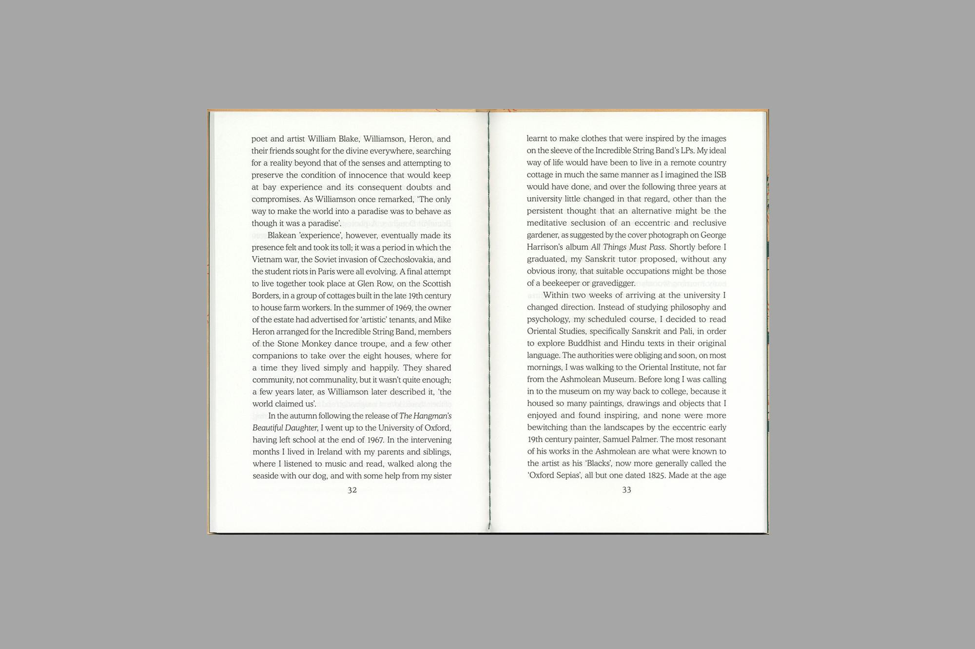 Beginning with his lived experience of 1960s counterculture, Hutchinson’s thoughts later move to frontier America and to rural living in nineteenth century Britain. In these times and places, moments of his own family’s history intertwine with multifarious examples of utopian thinking and establishment of new communities and forms of living. Constantly divergent in his approach, Hutchinson’s words oscillate from descriptions of Shaker art to The Beatles, to William Blake and much more, in a process to define a form of deep ecological thought urgently needed today.