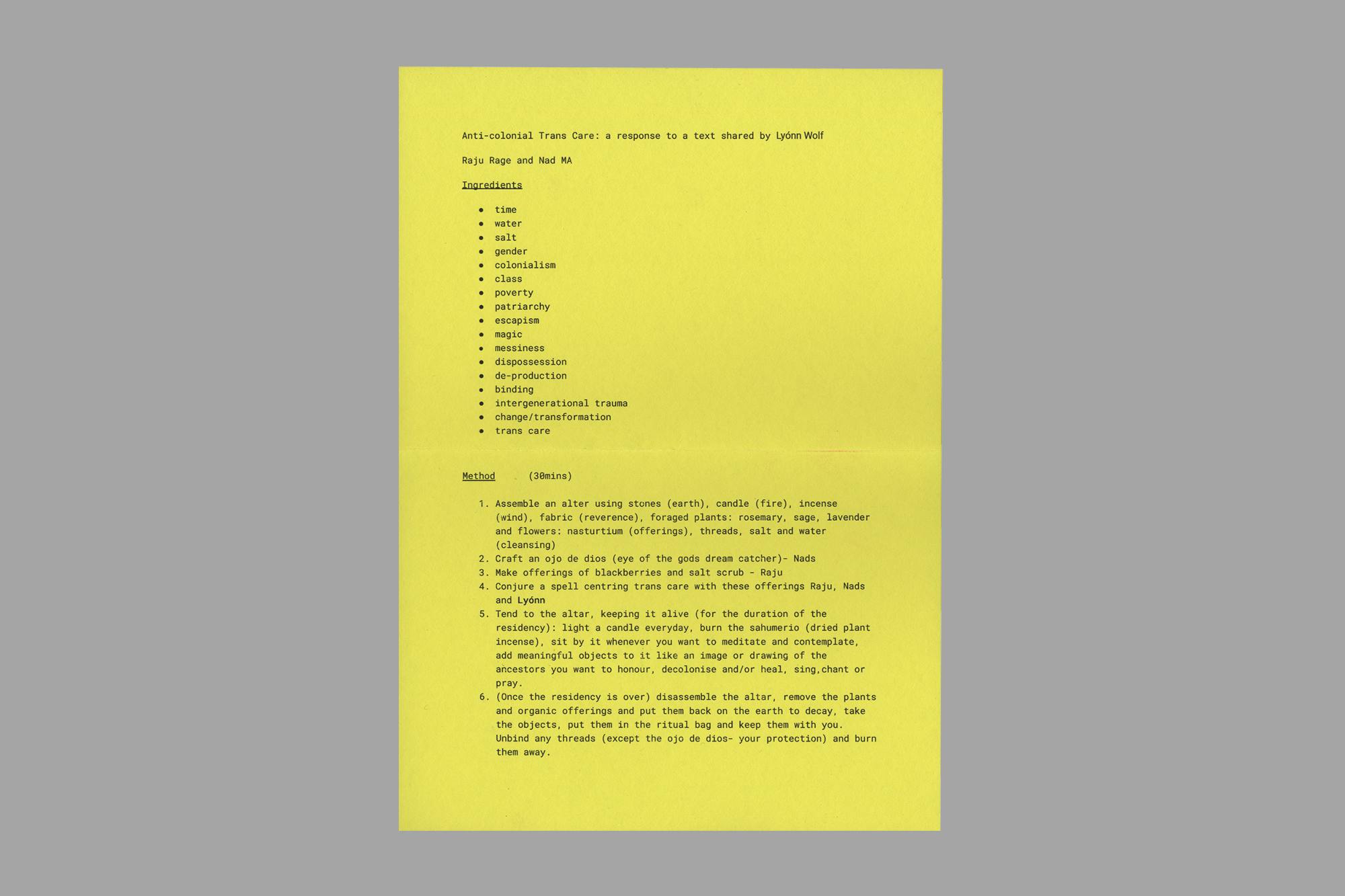 Over the past decade Lyónn Wolf has developed an interdisciplinary practice, oscillating between installation, performance, and experimental workshop formats. Key to their approach has been an ongoing practice of DIY publishing, often done collectively, to traverse queer economies and spatial politics, the lived present and imagined futures. Incorporating auto-fiction and anecdote, Wolf engages a tradition of queer-transfeminist working class vernacular and ethics, finding forms of recycling, thrift and ephemera to pose questions about value, accumulation, and authorship that, in their own words, ‘posits the imagination as a political tool with radical potential that can exist and erupt anywhere and at any time.’